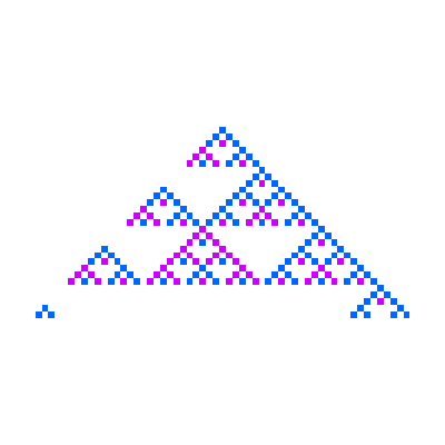 Besides the colored pixels, you can also see numbers for the Pascal-like triangles reduced modulo